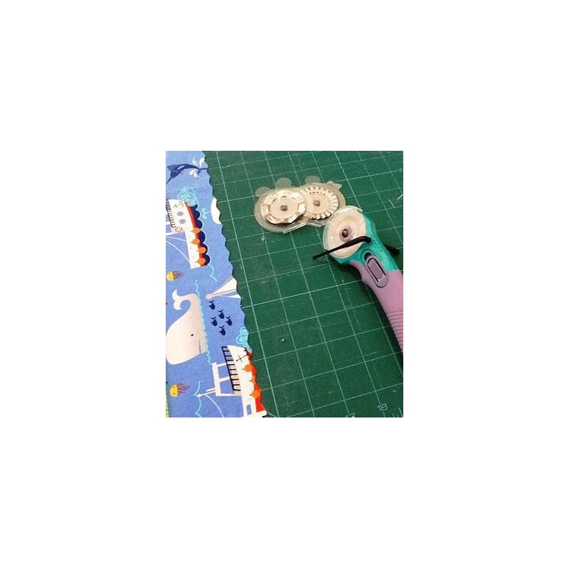 Περιλαμβάνει 3 λεπίδες. (κανονική, ζικ ζακ και κύμα). Διάμετρος 45 mm, ανατομική λαβή, κόβει μέχρι 8 στρώσεις υφάσματος. Περιλαμβάνει και οδηγό για τη απόσταση του κοψίματος.Διατίθονται και ανταλλακτικές λεπίδες.Κλίκ στο λίνκ για περισσότερες πληροφορίες.http://www.ftiaxto4u.gr/el/1831--45-mm-610472.html τιμη σετ
