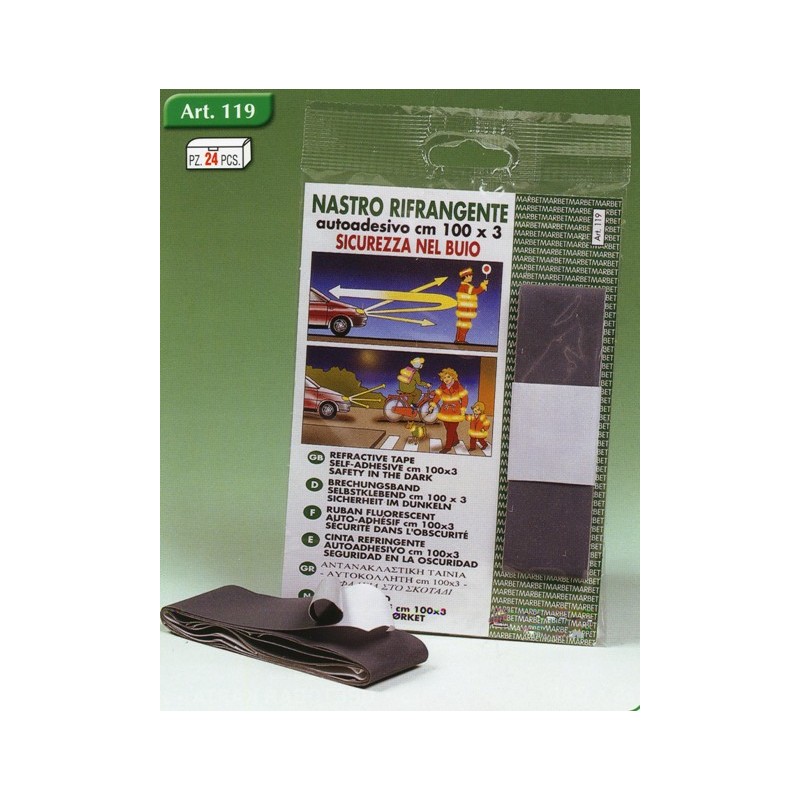Αντανακλαστική ταινία σε φάρδος 3 εκατοστά και μήκος 1 μέτρο. Σε γκρί χρώμα. Ασφάλεια στο σκοτάδι που γίνεται αντιληπτός από μεγάλη απόσταση, ακόμη και όταν βρέχει. Η τιμή είναι ανά τεμάχιο