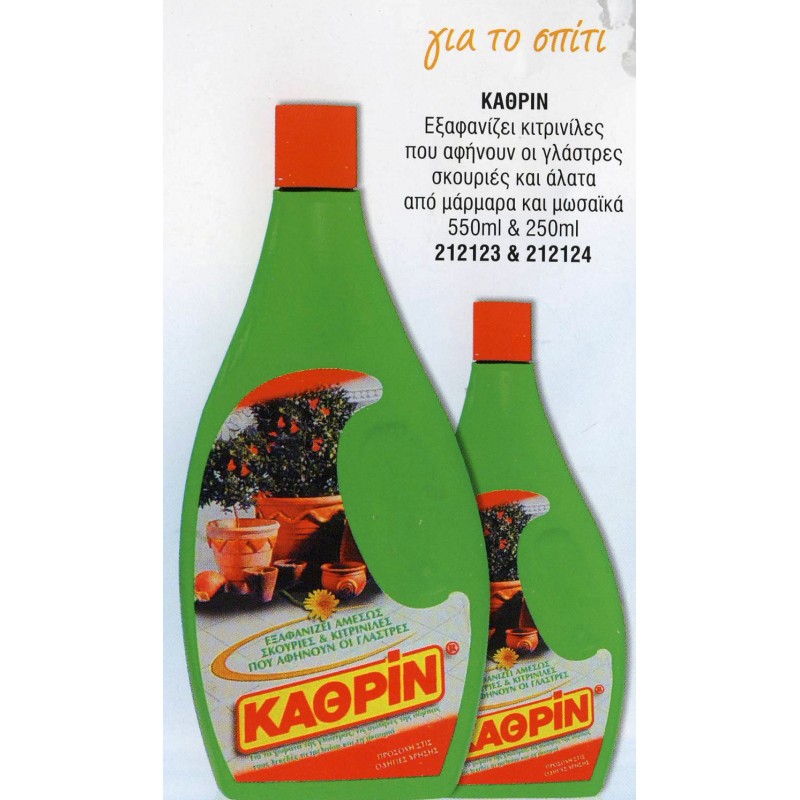 Καθαριστικό λεκέδων για το σπίτι. Εξαφανίζει κιτρινίλες που αφήνουν οι γλάστρες, σκουριές και άλατα από μάρμαρα και μωσαϊκά. Η τιμή είναι για μια συσκευασία των 550 ml