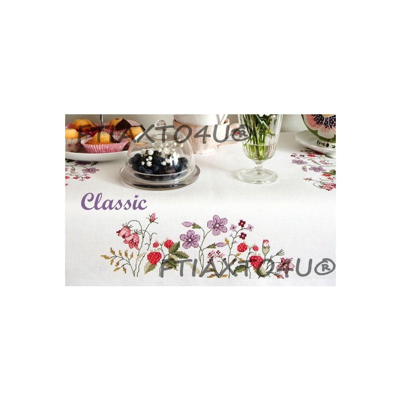 Book 140 Classic presents classical, floral designs on tablecloths and runners in white and natural