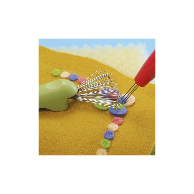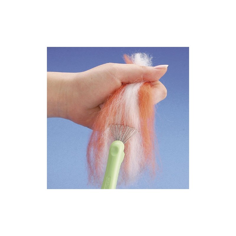 Συγκρατεί μικρά μοτίφ τσόχας στην επιθυμητή θέση. Αναμειγνύει και ενσωματώνει τις ακατέργαστες μάλλινες ίνες για να έχετε ένα πολύχρωμο αποτέλεσμα. Καθαρίζει τα υπολείμματα των ινών από τη βάση της Βούρτσας FELTING για να την διατηρείτε πάντα καινούργια.