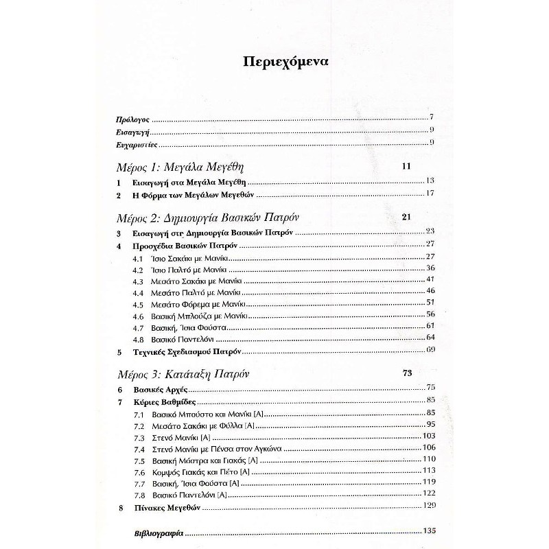 Το βιβλίο εξετάζει και παρουσιάζει μια πιο σύγχρονη προσέγγιση της δημιουργίας και κοπής πατρόν για μεγαλύτερα μεγέθη. Σελίδες 133.