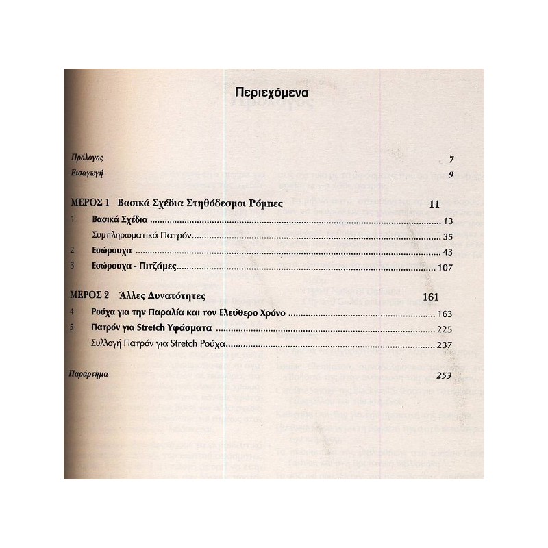 Το βιβλίο αναλύει την Τεχνολογία και τις Τεχνικές σχεδίασης, κοπής και ραφής εσωρούχων, Μαγιό και Σπορ Ρούχων, καθώς και δίνει προτάσεις σχετικά με τα υφάσματα που χρησιμοποιούνται σε κάθε πατρόν. Σελίδες 256