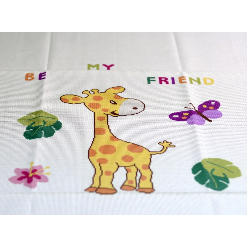 Σχέδιο τυπωμένο Καμηλοπάρδαλη για κουβερτάκι Νο 7005 διαστάσεις 90Χ120εκ,μαξιλαράκι Νο 7105 διαστάσεις 30Χ50εκ και φάσα Νο 7305 διαστάσεις 10Χ54 εκατοστά, τιμή τεμαχίου.