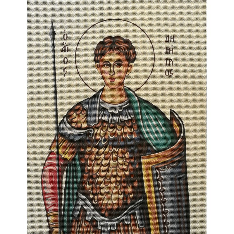 Σταμπωτός καμβάς που απεικονίζει τον Άγιο Δημήτριο.