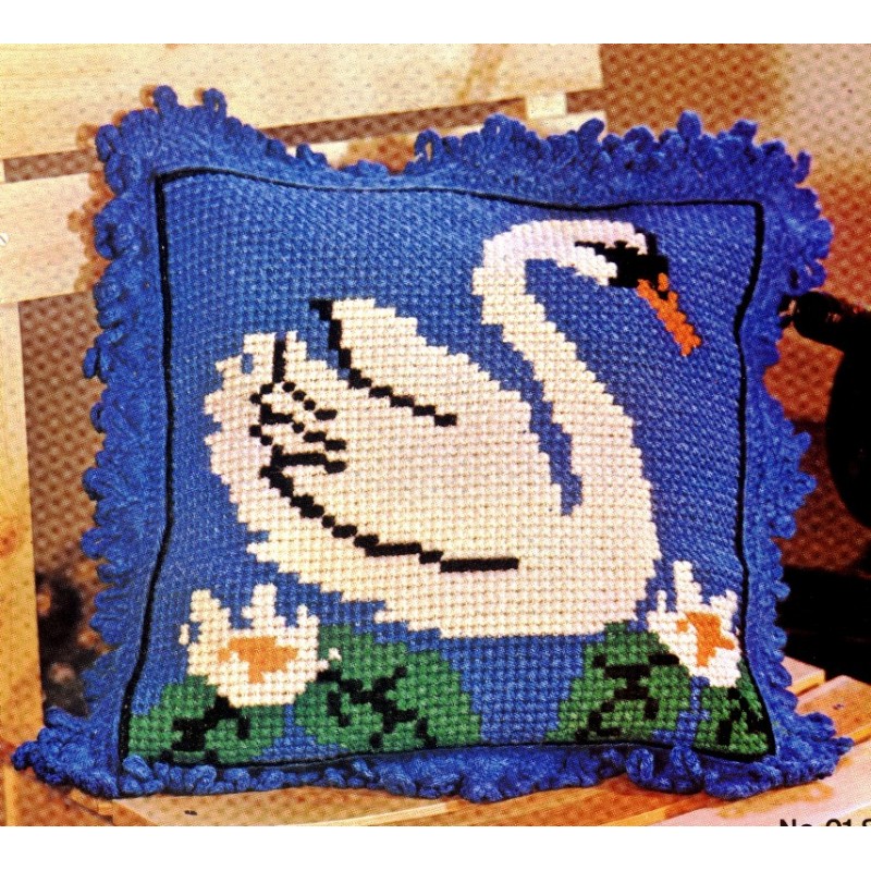 Παιδικό κεντητό μαξιλαράκι που απεικονίζει έναν κύκνο!