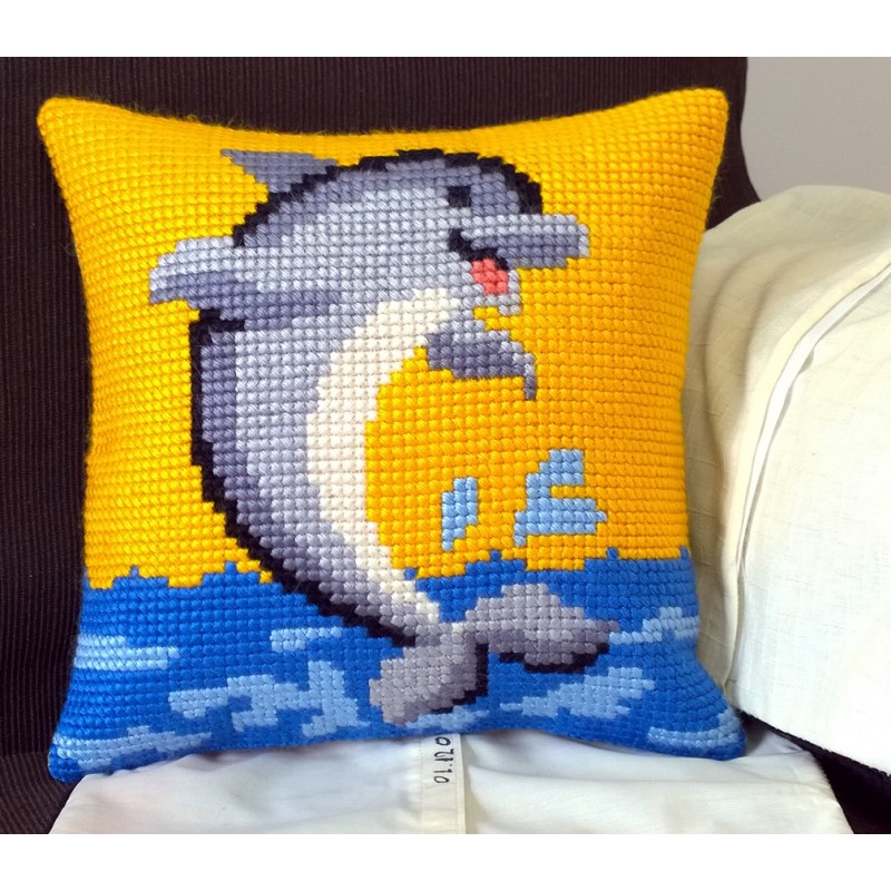 Παιδικό κεντητό μαξιλαράκι που απεικονίζει ένα δελφοινάκι!