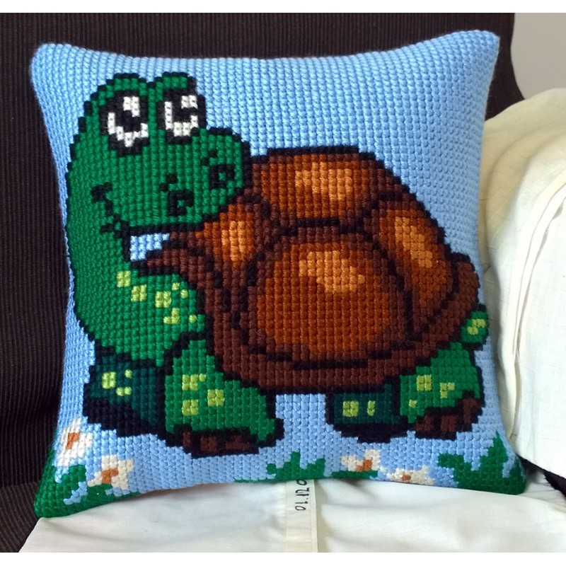 Παιδικό κεντητό μαξιλαράκι που απεικονίζει ένα χελωνάκι!