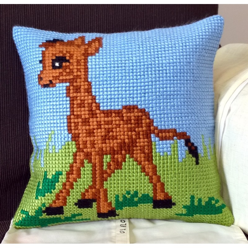 Παιδικό κεντητό μαξιλαράκι που απεικονίζει μια καμηλοπάρδαλη!
