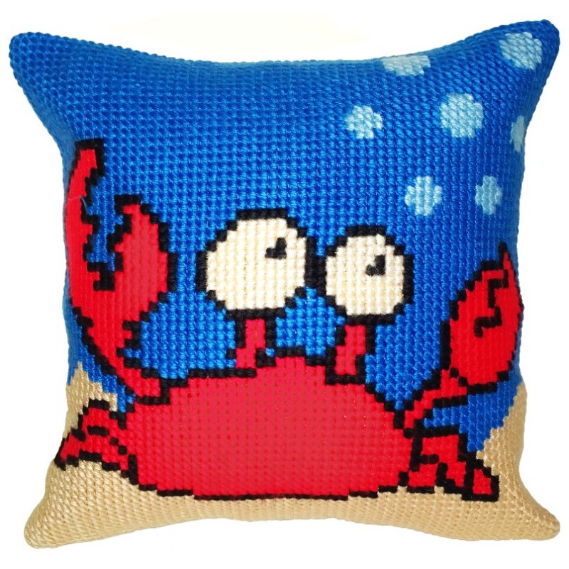 Παιδικό κεντητό μαξιλαράκι που απεικονίζει ένα καβουράκι!