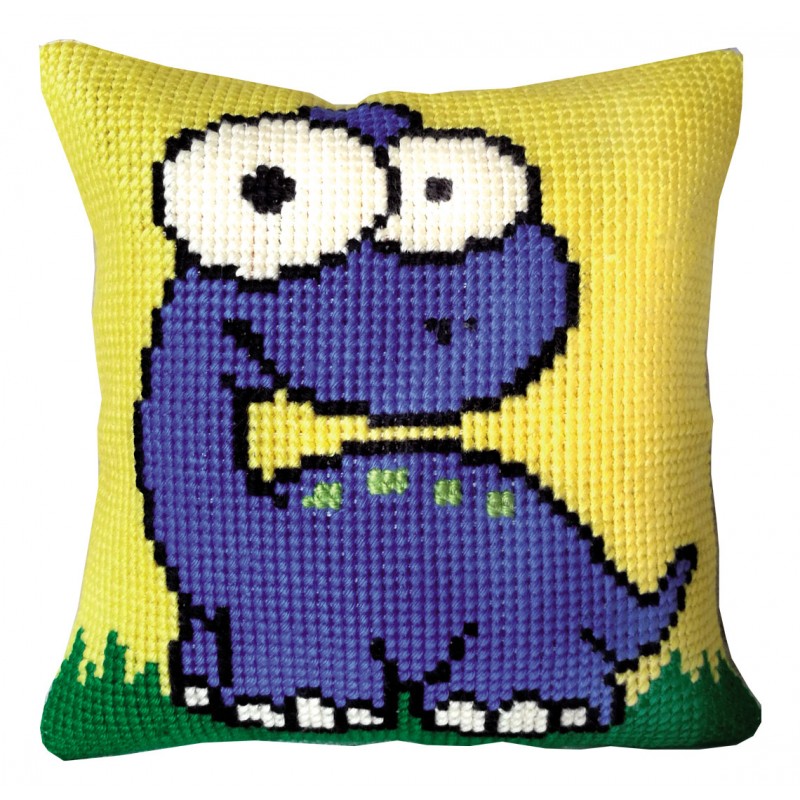 Παιδικό κεντητό μαξιλαράκι που απεικονίζει ένα δεινοσαυράκι!