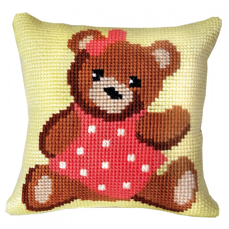 Παιδικό κεντητό μαξιλαράκι που απεικονίζει ένα αρκουδάκι!