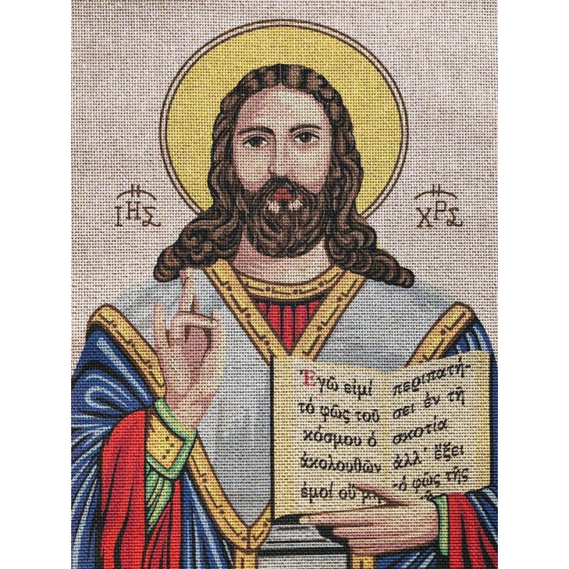 Aναπαραγωγή βυζαντινών εικονιδίων, τυπωμένες σε ύφασμα 93 % βαμβάκι-7 % μεταλλικά νήματα, 4 st / cm.