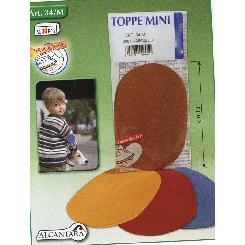 Μπαλώματα από σουέτ ύφασμα, κατασκευασμένα σε μικρό μέγεθος (από 1 έως 5 ετών), ανάλογα με το ύψος των παιδιών. Σε πολλά χρώματα. Ένα σετ σε κάθε συσκευασία.