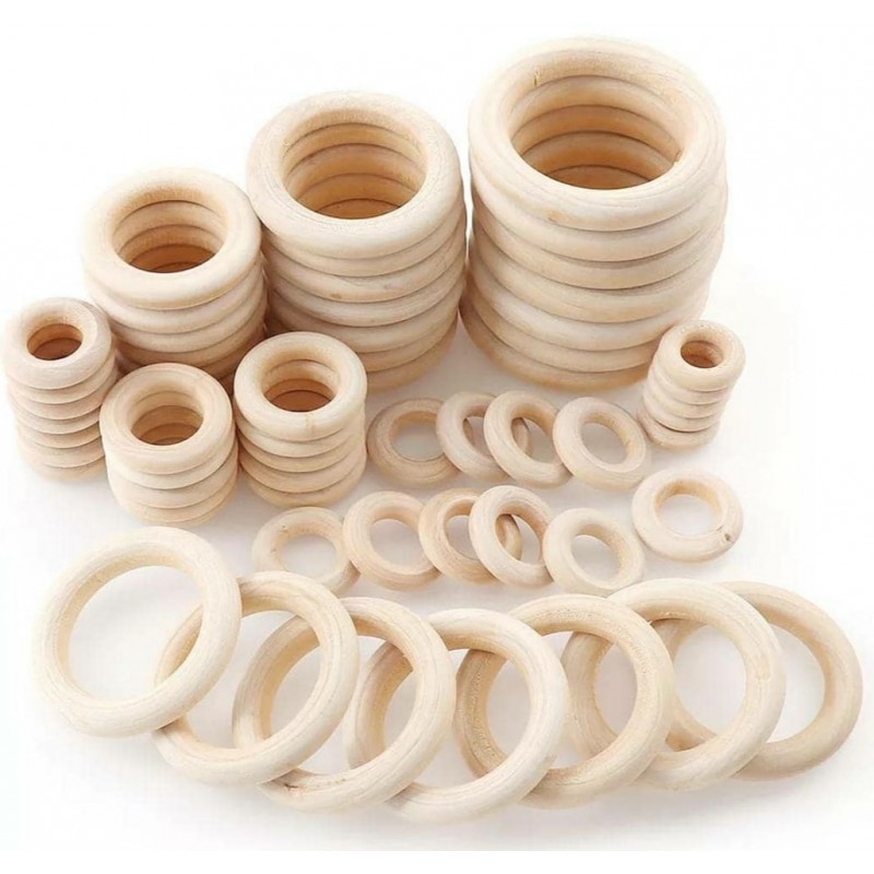 Κρίκοι ξύλινοι για κατασκευές, ιδανικοί για μακραμέ, σε χρώμα φυσικό, τιμή τεμαχίου.